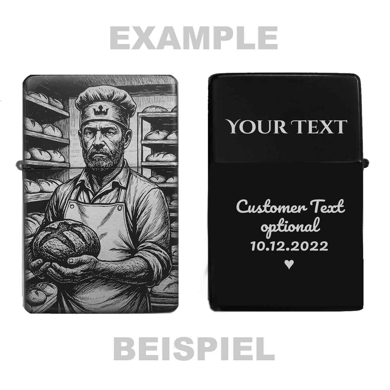 Sturmfeuerzeug mit Gravur "Bäcker bei der Arbeit"