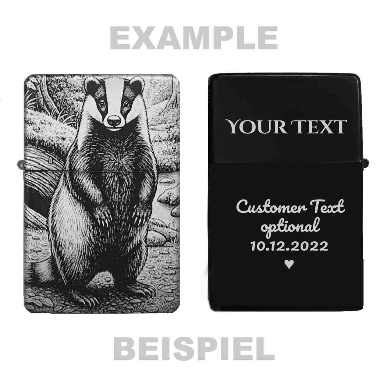 Feuerzeug Dachs, Gravur Dachs, Geschenk Jäger, Geschenk Förster, Waldtier Motiv, Tier Gravur, Geschenk personalisiert, Männer Geschenk