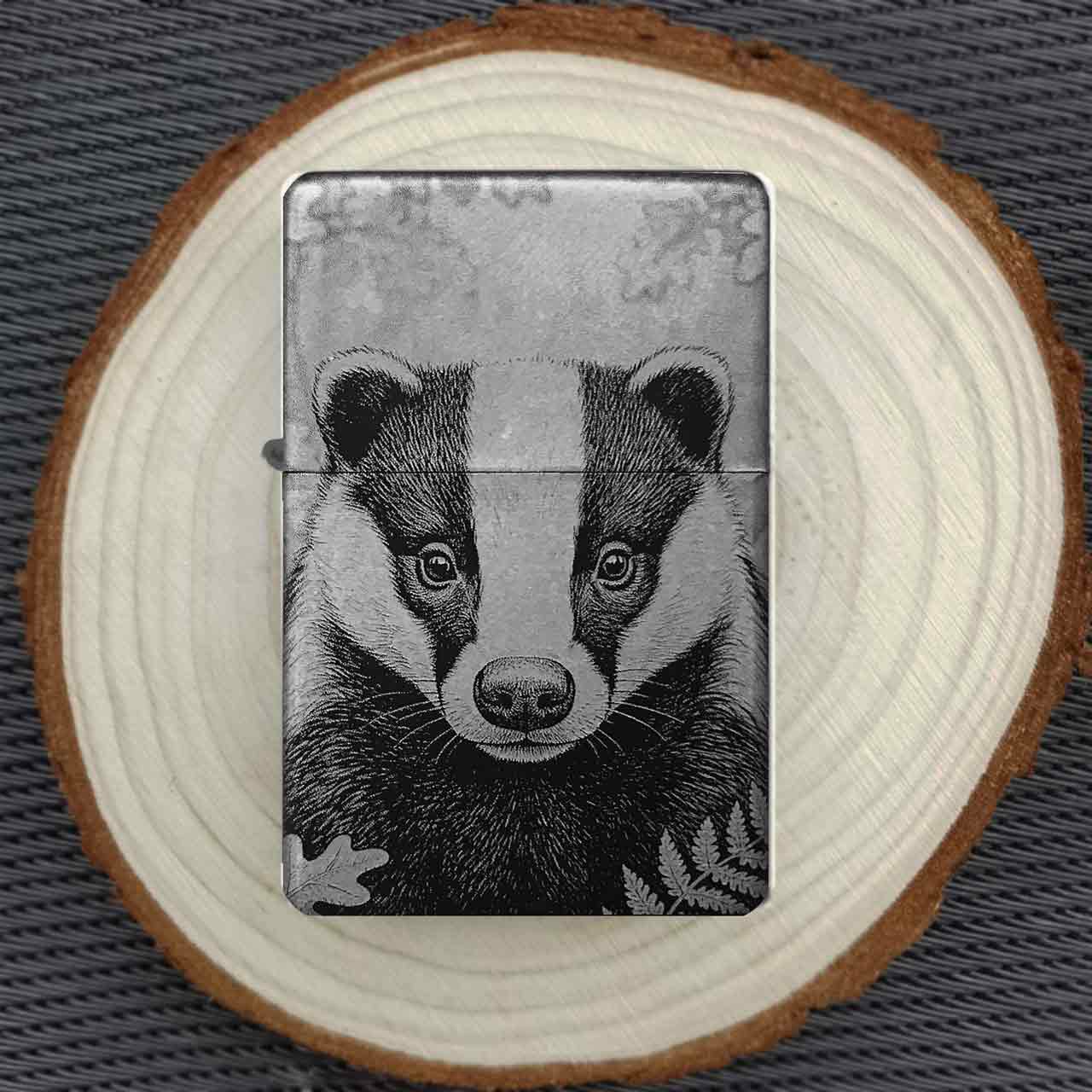 Feuerzeug Dachs, Gravur Dachs, Dachs Kopf, Geschenk Jäger, Geschenk Förster, Waldtier Motiv, Tier Gravur, Geschenk personalisiert, Männer Geschenk