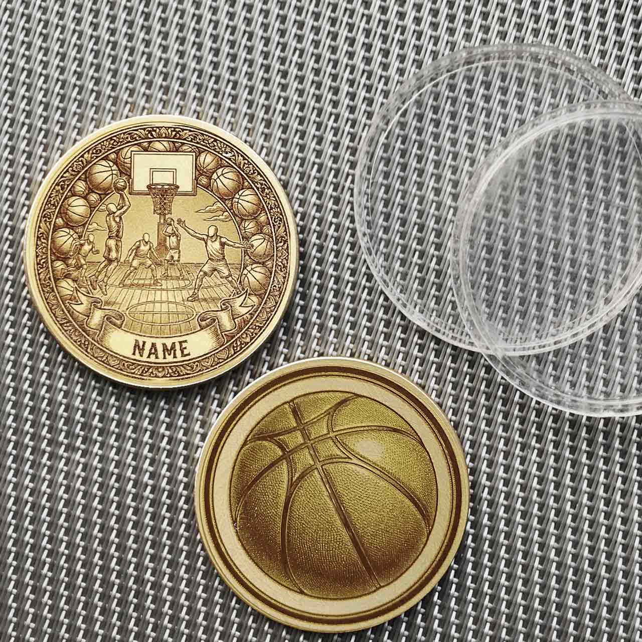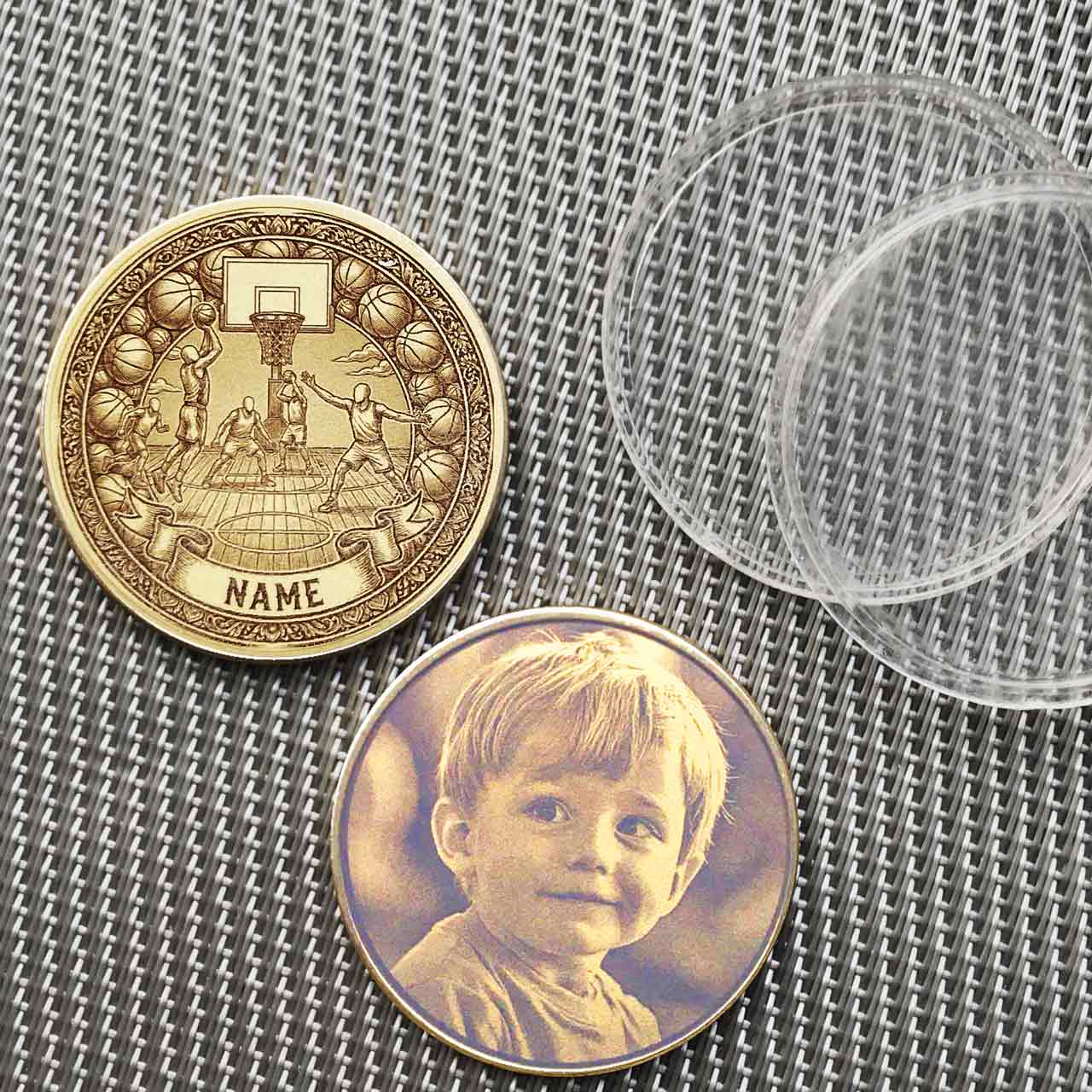 Optional (Eigenes Foto/Design): Mach die Münze zum Unikat! Gegen Aufpreis gravieren wir statt des Basketballs ein Foto des Spielers, das Vereinswappen oder ein eigenes Logo auf die Rückseite.