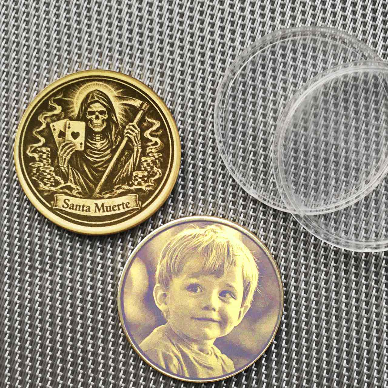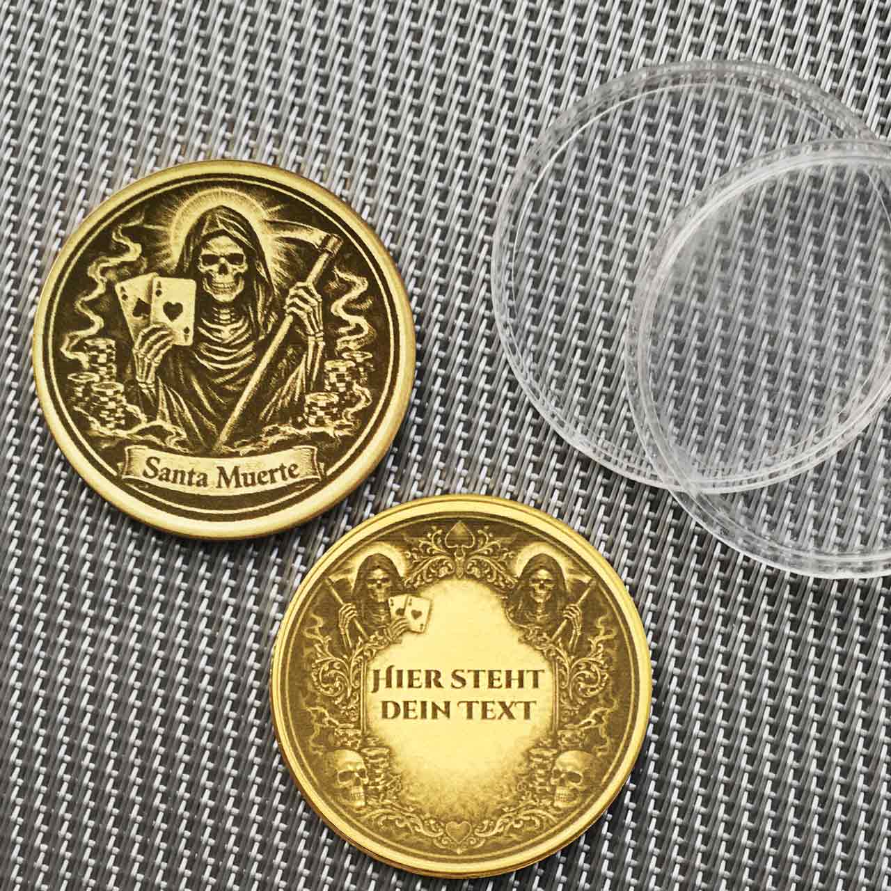 santa muerte münze, santa muerte messing münze, messing münze gravur, santa muerte gravur, dark art münze, folklore münze, gothic münze, personalisierte münze, münze mit gravur, textgravur inklusive, foto logo gravur, glücksbringer münze, sammlerstück münze, geschenk dark art, geschenk mit motiv