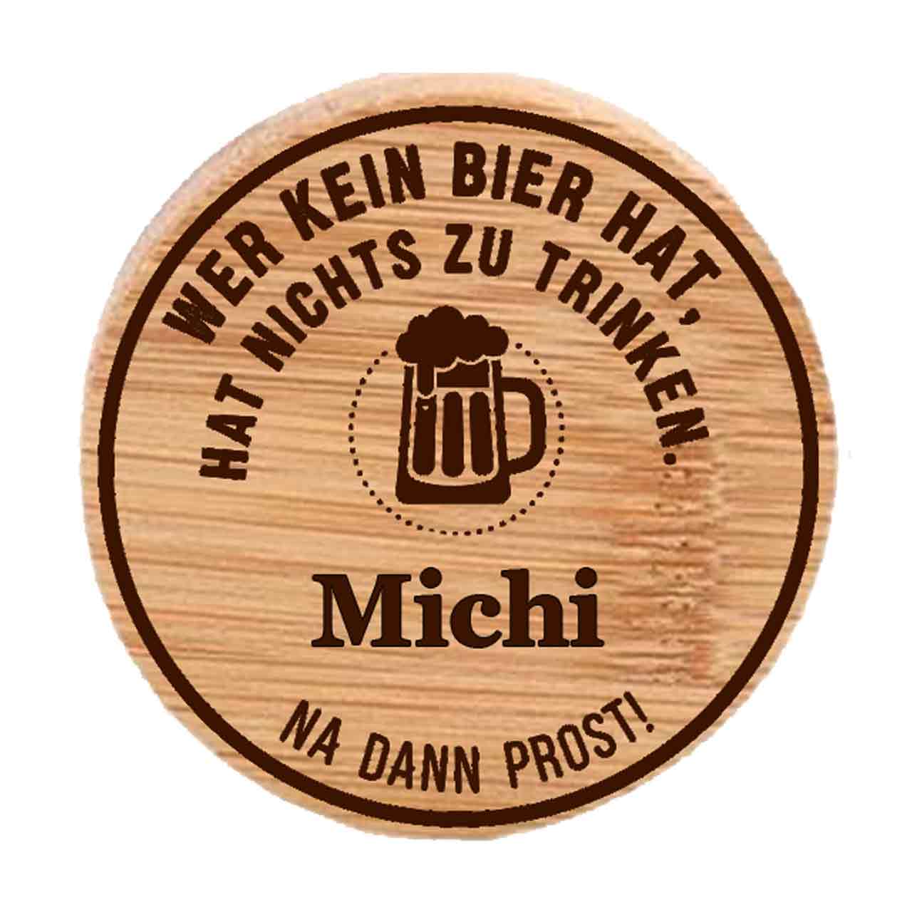 Der Spruch für wahre Genießer: Die Lasergravur "Wer kein Bier hat, hat nichts zu trinken. Na dann Prost!" sorgt garantiert für ein Schmunzeln bei deinen Gästen. Der integrierte Bierkrug rundet das humorvolle Design perfekt ab.