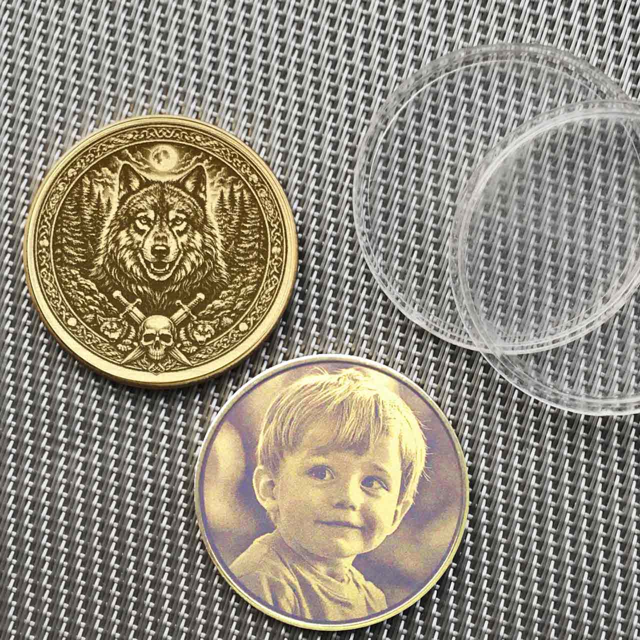 Optional: Foto-Upgrade Anstelle der Text-Gravur kann ein Foto-Upgrade gewählt werden. Wir lasern ein beigestelltes Foto vollflächig auf die Rückseite der Münze.