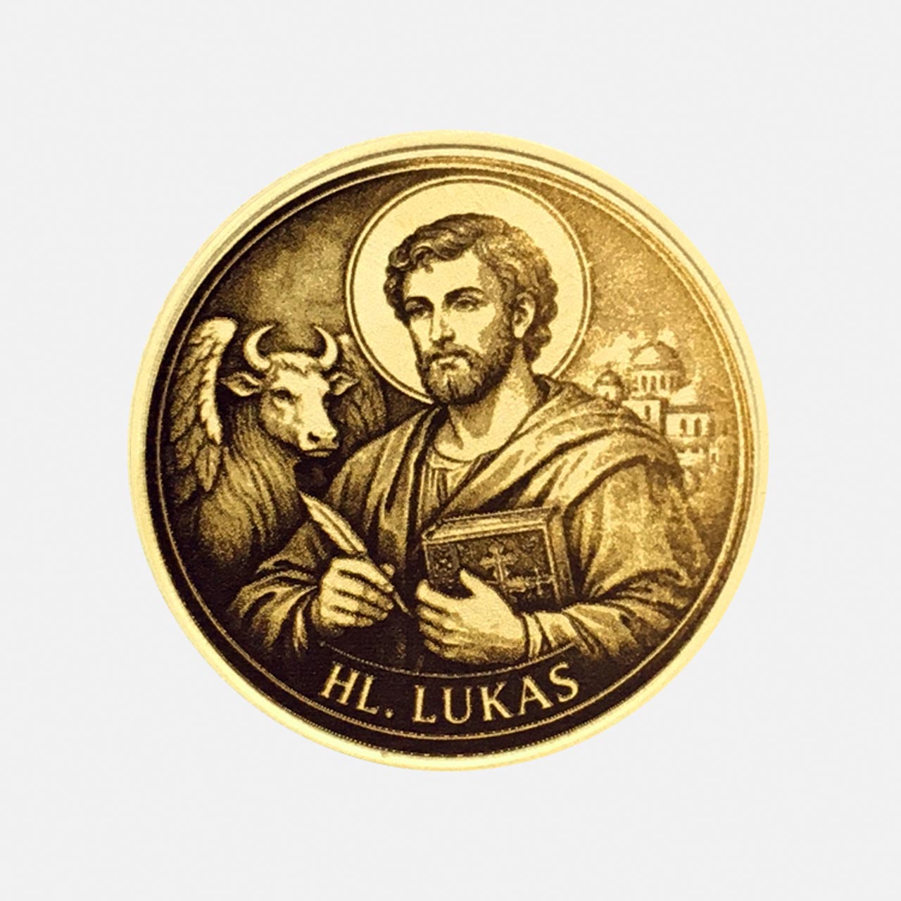 Curación e inspiración: San Lucas es el patrón de los médicos, enfermeros y artistas. Esta moneda maciza de latón es un compañero ideal para todos los que trabajan en profesiones de curación o campos creativos.